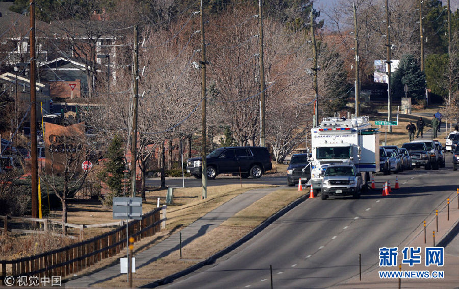 当地时间2017年12月31日,美国科罗拉多州高原牧场,当地发生一起枪击事件,1名警员中枪身亡,另有4名警员和2名平民受枪伤。警方说枪手已被击毙。(图片来源:视觉中国)