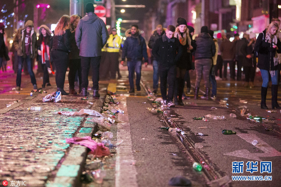 2018年1月1日,英国爱丁堡,跨年狂欢过后,遍地垃圾。(图片来源:东方IC)