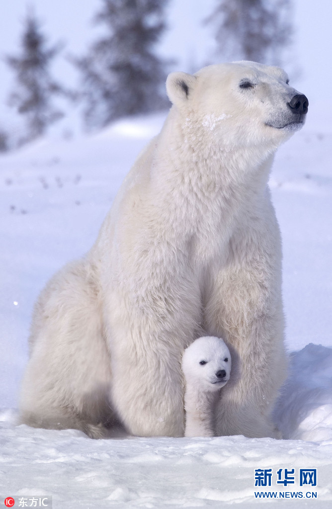 2012年12月10日,美国摄影师Keren Su在加拿大Waspusk国家公园拍了一组北极熊妈妈与熊宝宝的有爱照片,足以融化最冰冷的心。熊宝宝躲进妈妈怀里,熊妈妈用双臂把它揽在身下。(图片来源:东方IC)