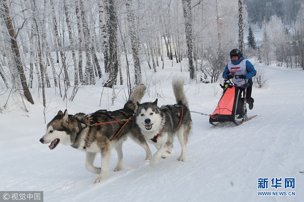 俄罗斯举行狗拉雪橇比赛 哈士奇一展实力