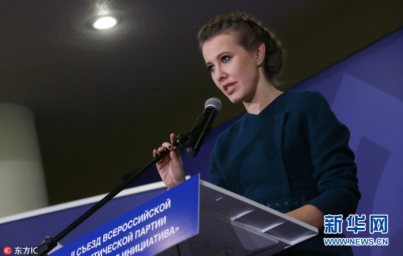 【谢尼娅·索布恰克:我是动真格】2017年12月23日,俄罗斯莫斯科,俄电视台主持人、总统候选人克谢尼娅·索布恰克出席竞选活动。索布恰克家族与普京有很深的渊源。外界称索布恰克为普京“导师”之女。