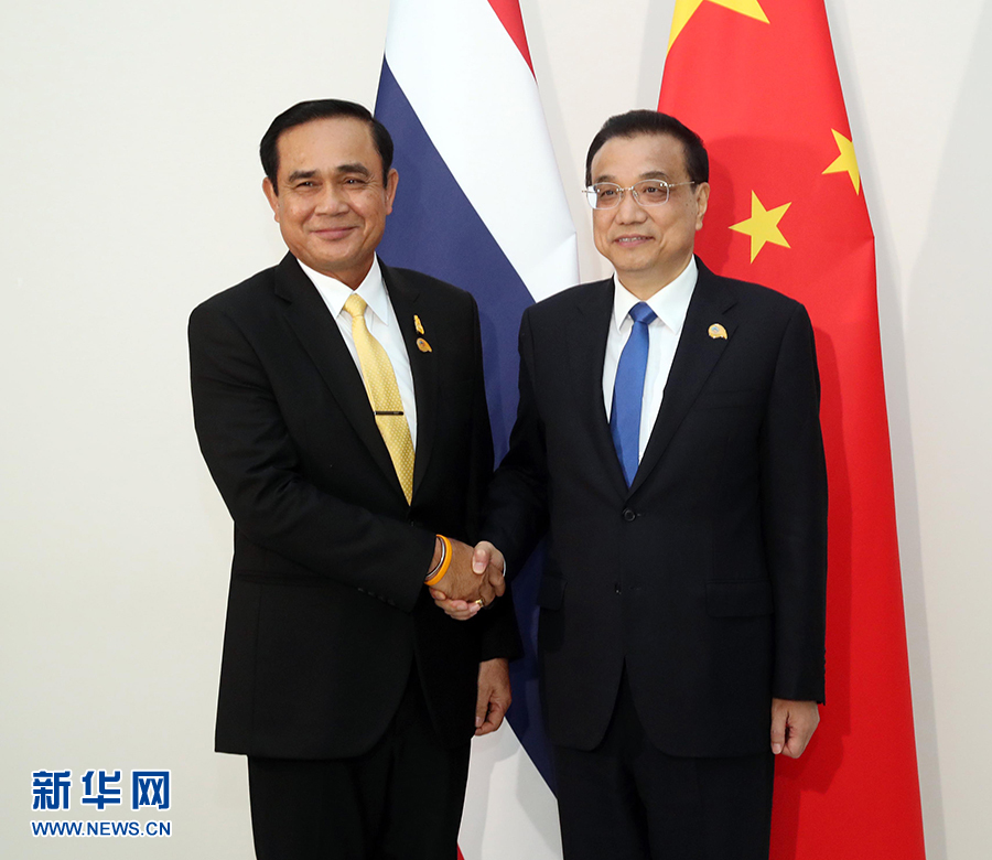 李克强表示,中泰一家亲深入人心,两国关系发展势头很好,各领域合作持续推进。上个月,中泰铁路项目一期工程动工,标志着中泰合作迈上新台阶。希望双方再接再厉,推动项目顺利实施,并带动中泰其他领域合作向前迈进。中方愿加强“一带一路”倡议同泰国“东部经济走廊”等发展战略对接,提升中泰贸易便利化水平,加强经贸、旅游、科技等领域合作,更好实现互利共赢。