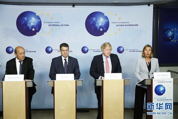新华社布鲁塞尔1月11日电(记者郑江华)欧盟外交和安全政策高级代表莫盖里尼和法、德、英三国外长11日在布鲁塞尔重申,欧盟及其成员国坚决维护和履行伊朗核问题全面协议。
