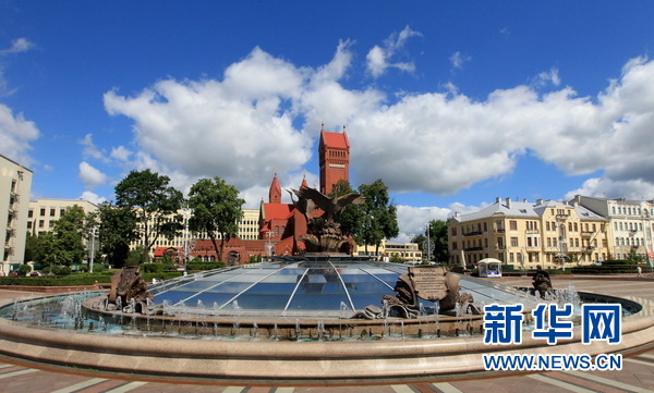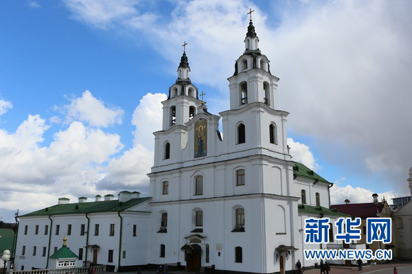 明斯克自由广场上的一个教堂。新华网记者魏忠杰 摄