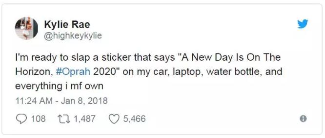 Kylie Rae: 我已经准备好在我的车、电脑、水瓶和我所有物品上贴上标签:“A New Day Is On The Horizon,#奥普拉2020”。