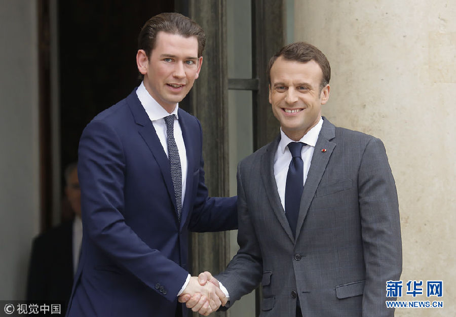 当地时间2018年1月12日,法国巴黎,法国总统马克龙会见到访的奥地利总理塞巴斯蒂安·库尔茨。 图片来源:视觉中国)