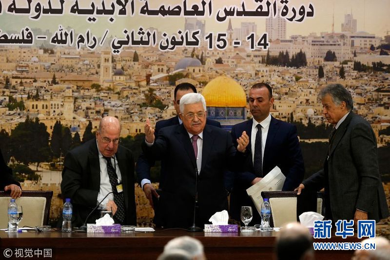 1月14日,约旦河西岸拉马拉,巴勒斯坦总统阿巴斯在巴勒斯坦中央委员会会议上发表讲话,并称以色列已经“终止”了奥斯陆协议。(图片来源:视觉中国)