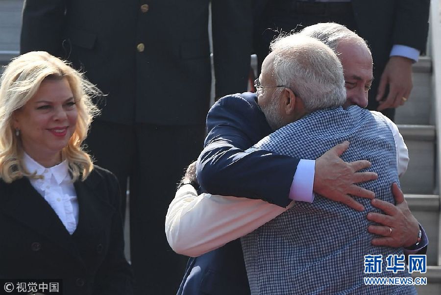 当地时间1月14日,印度新德里,以色列总理内塔尼亚胡抵达印度展开访问。(图片来源:视觉中国)