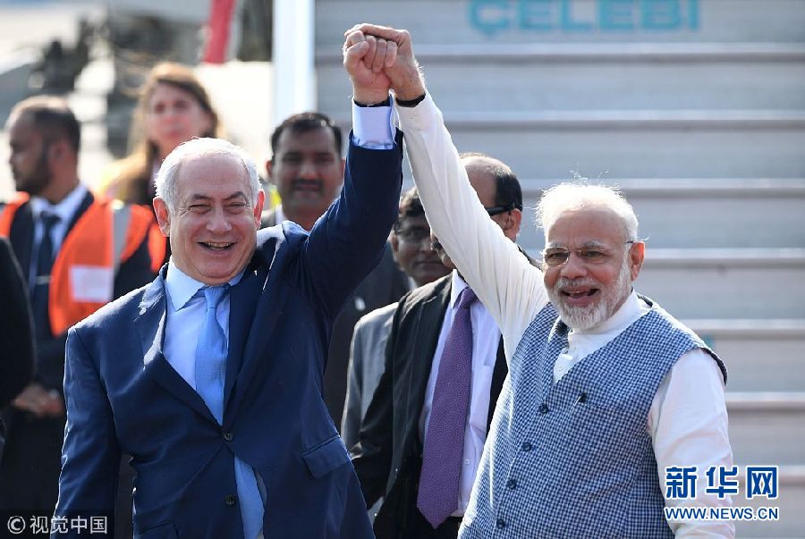 当地时间1月14日,印度新德里,以色列总理内塔尼亚胡抵达印度展开访问。(图片来源:视觉中国)