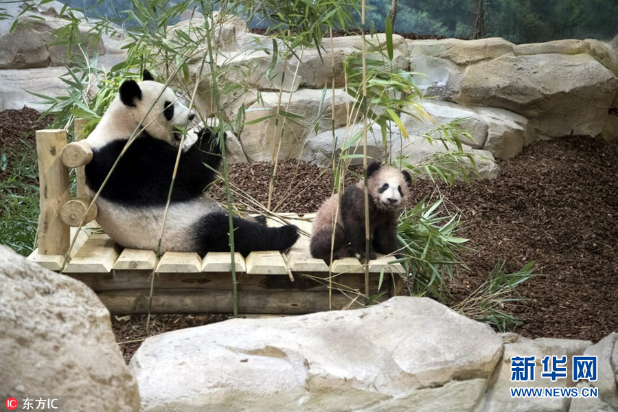 旅法熊猫宝宝“圆梦”与公众见面 帮妈妈“拿竹子”超乖巧