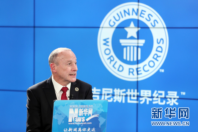 吉尼斯世界纪录全球总裁阿里斯塔尔·理查兹接受新华网访谈。新华网发 郭小天摄