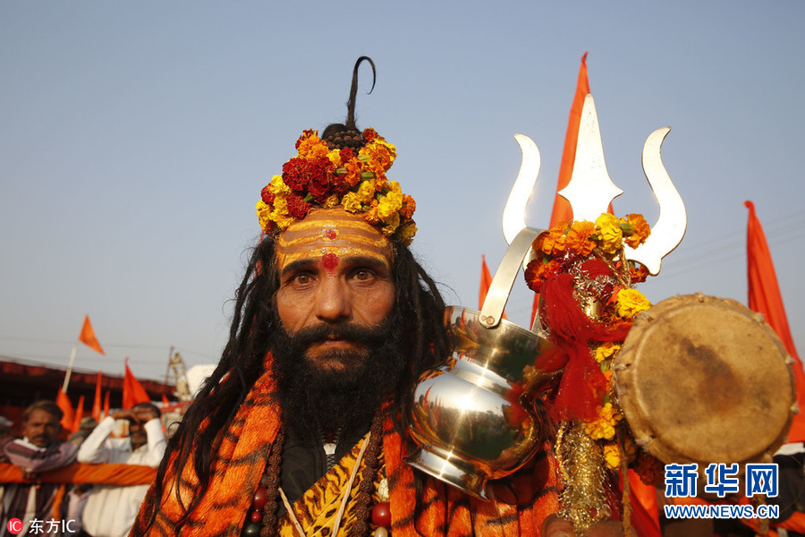 1月19日,印度阿拉哈巴德,印度教徒参加世界印度教大会。世界印度教徒会议是一个以印度教徒教义为基础的,印度教民族主义非政府组织。(图片来源:东方IC)