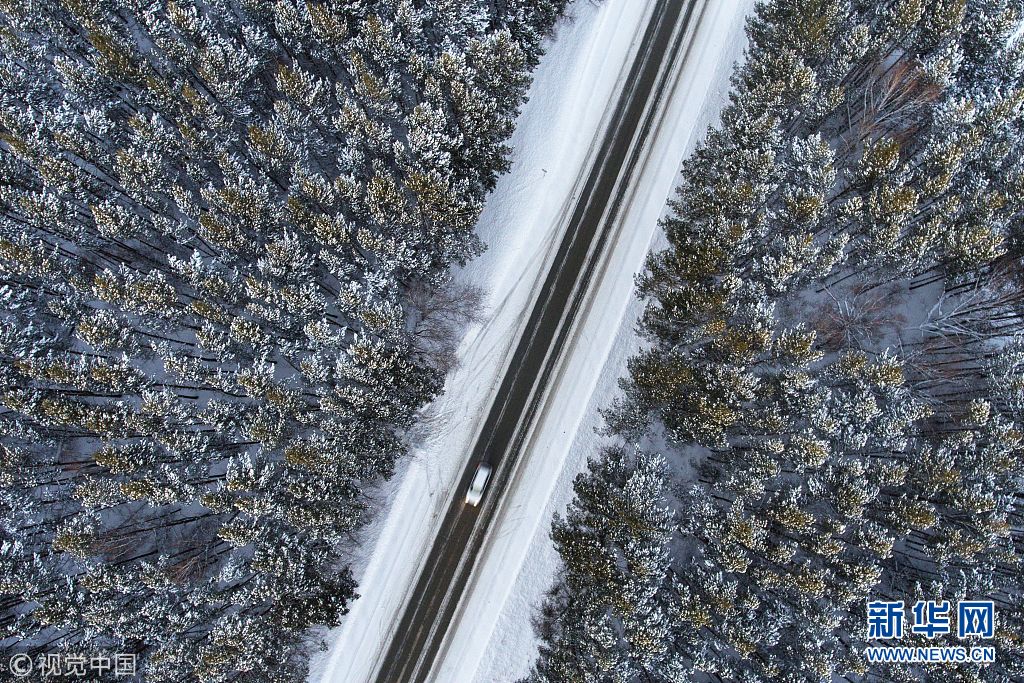 航拍俄新西伯利亚地区冬季美景 冰雪世界宛若仙境