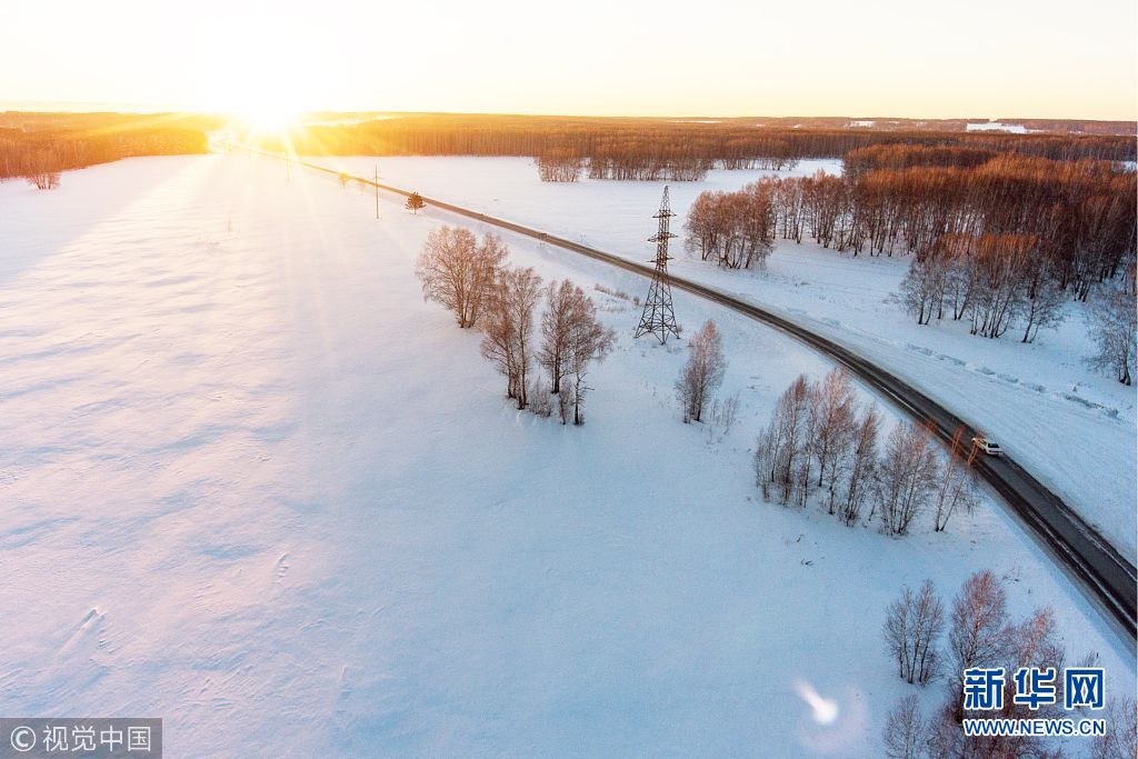 航拍俄新西伯利亚地区冬季美景 冰雪世界宛若仙境