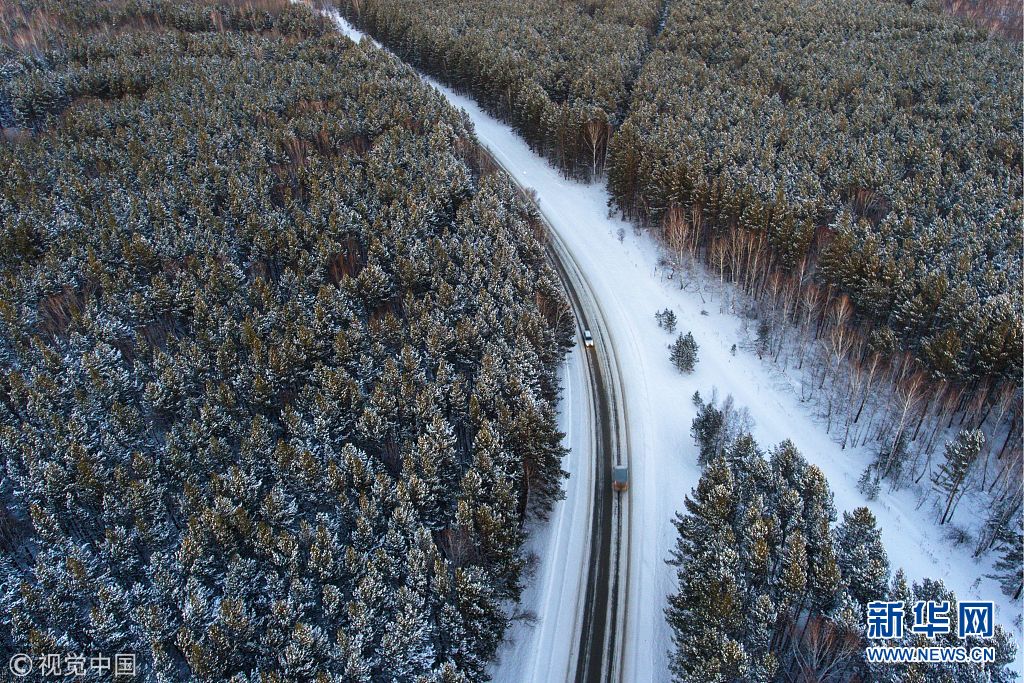 航拍俄新西伯利亚地区冬季美景 冰雪世界宛若仙境