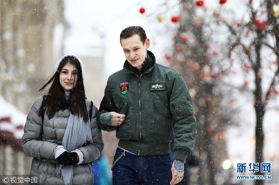当地时间1月20日,俄罗斯莫斯科,民众冒雪出行。(图片来源:视觉中国)