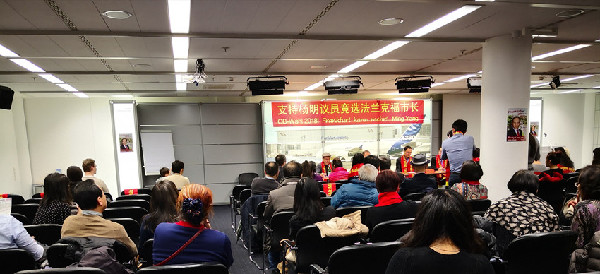 当地时间20日下午,近百名旅居德国法兰克福的华人在德国法兰克福机场举行会议,为首位竞选法兰克福市市长的德国华人杨明先生呐喊助威,组织选票。