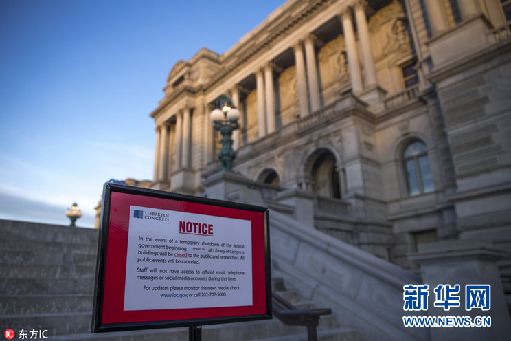 当地时间2018年1月20日,美国华盛顿,美国联邦政府停摆,国会图书馆被迫关闭。由于美国国会参议院近日没能通过一项联邦政府临时拨款法案,联邦政府非核心部门从当地时间20号零点开始被迫暂时关闭。 (图片来源:东方IC)