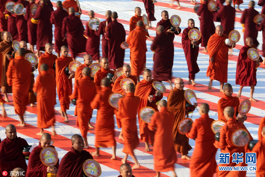1月21日,缅甸曼德勒,当地举行大型布施仪式,泰国和缅甸两国约2万名僧侣参加了这一仪式。(图片来源:东方IC)