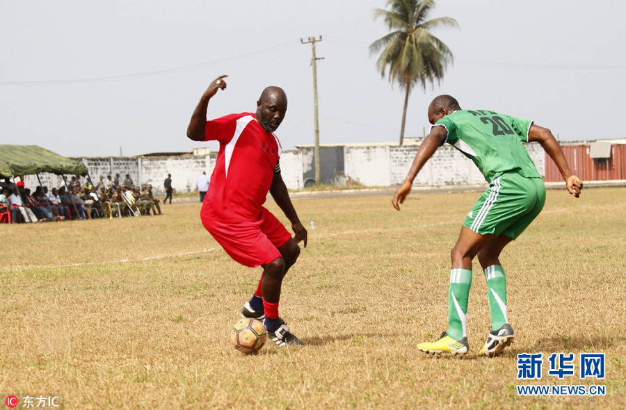 1月20日,利比里亚首都蒙罗维亚,利比里亚当选总统、前世界足球先生乔治-维阿参加慈善足球比赛,率领维阿全明星队对战利比里亚武装部队士兵队。乔治-维阿在去年12月27日当选利比里亚新一任总统,并将于2018年1月22日就职。(图片来源:东方IC)