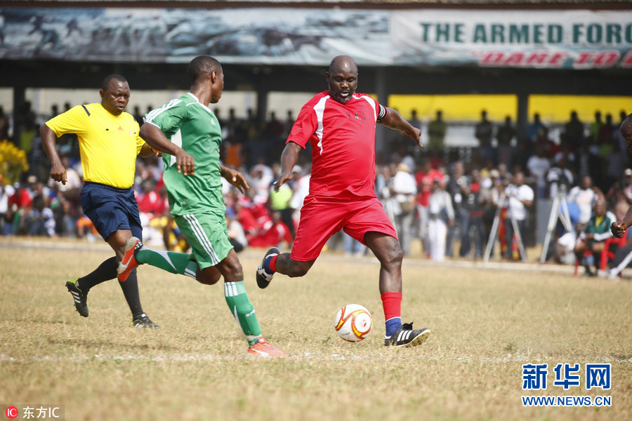 利比里亚当选总统维阿参加慈善球赛 前球星脚法依旧娴熟