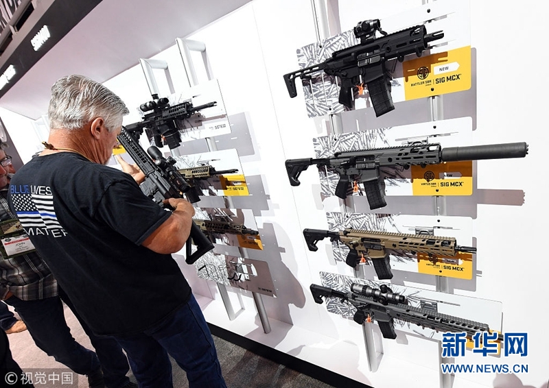 当地时间2018年1月23日,美国拉斯维加斯,美国全国射击运动基金会(NSSF)举办枪支展销会。(图片来源:视觉中国)