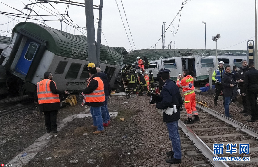 当地时间1月25日晨,意大利北部城市米兰至布雷西亚的城际列车发生出轨事故,致4人死亡,逾百人受伤,其中5人重伤。(图片来源:东方IC)