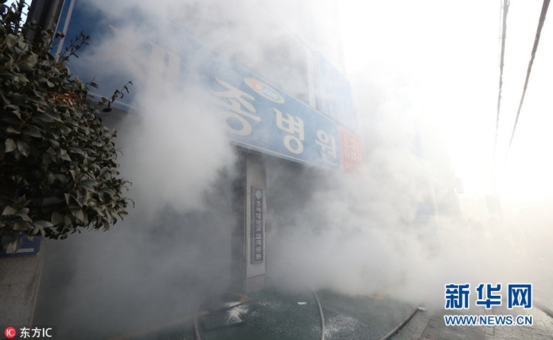 韩国庆尚南道密阳市一家医院当地时间26日上午发生火灾。新华网发