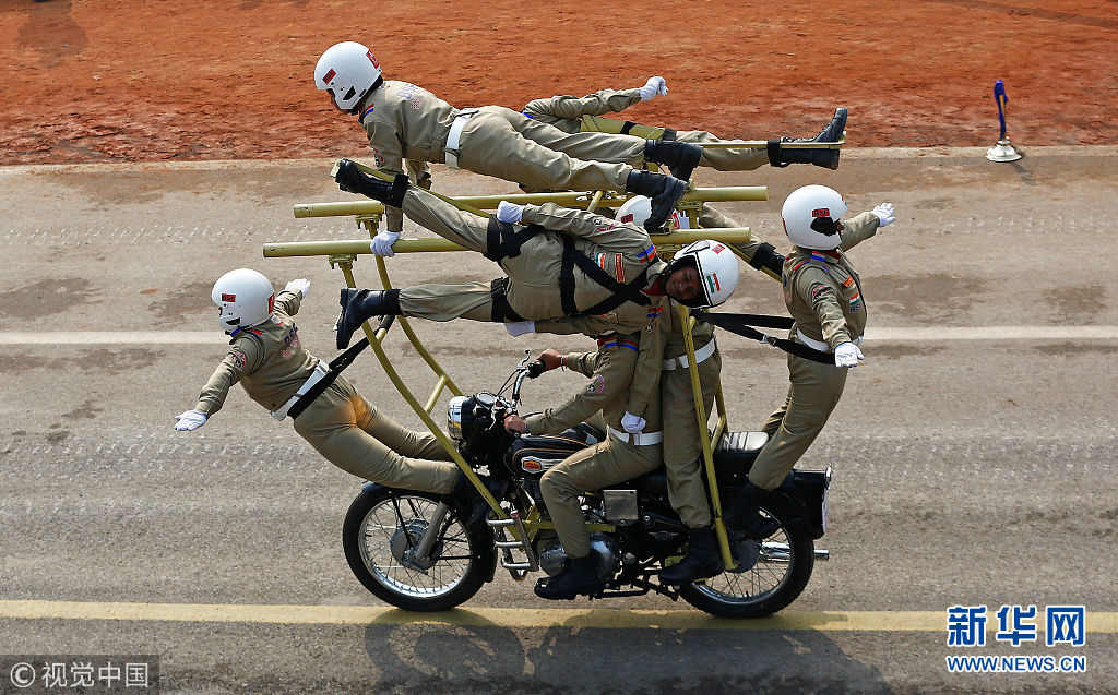 印度举行阅兵游行庆祝第69个共和国日 摩托车队再展“神技”