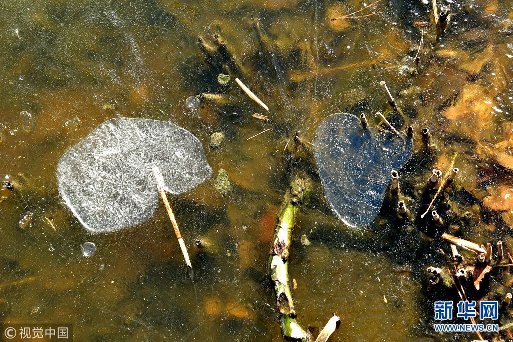 当地时间2018年1月27日,东京,东京都心已经连续6日被气象厅认定为寒冷“冬日”(当天最低气温为零下),这是1984年2月以来,时隔34年的寒冷天气。1月27日中午,在东京市中心的日比谷公园,残雪依旧,湖面结冰。(图片来源:视觉中国)