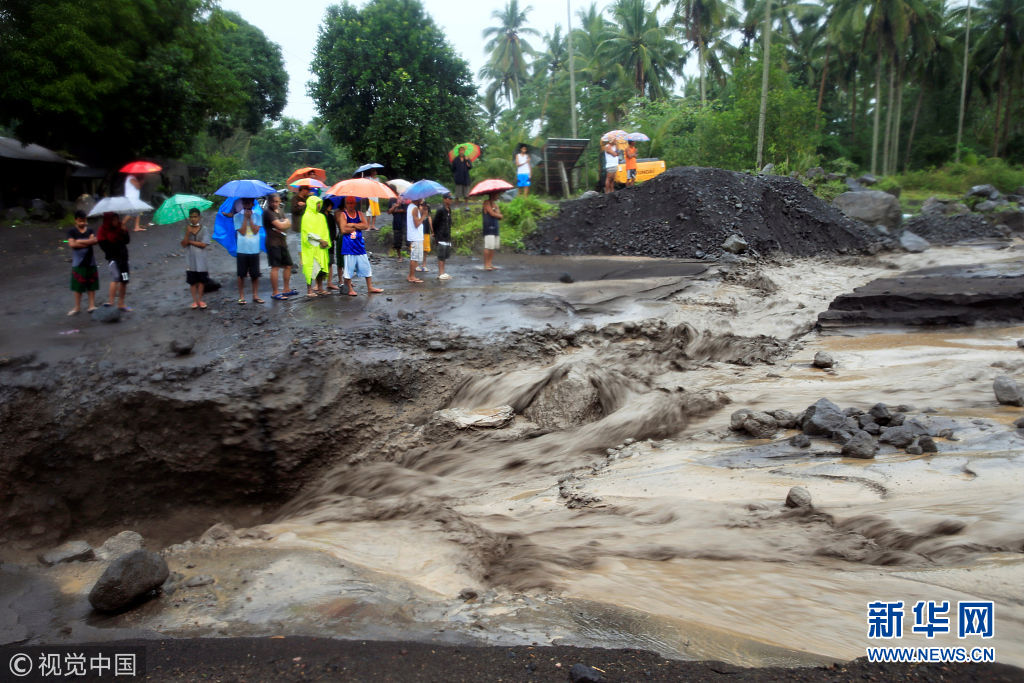 菲律宾马荣火山持续喷发 火山灰落入河中变泥浆