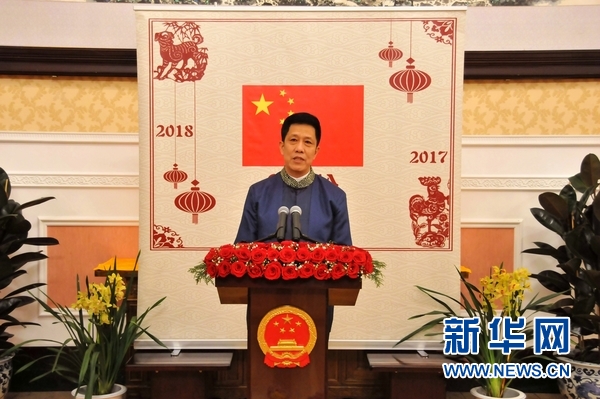 1月28日,在波兰首都华沙,中国驻波兰大使徐坚在新春招待会上致辞。当日,中国驻波兰大使馆举行新春招待会,在波华侨华人、中资机构员工、汉语教师及留学生等数百人齐聚一堂,共迎新春。新华网发 石中玉摄