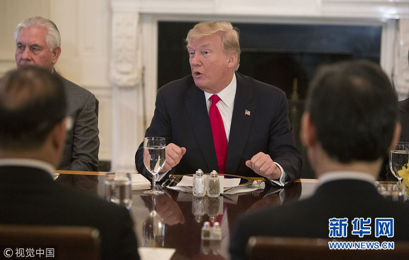 1月29日,美国华盛顿,美国总统特朗普与联合国安理会成员一起享用午宴。(图片来源:视觉中国)