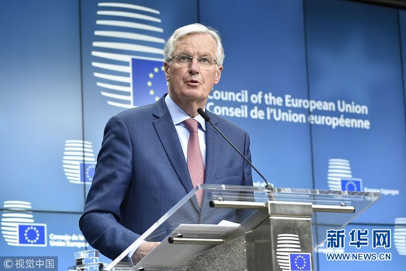 1月29日,欧盟首席“脱欧”谈判代表米歇尔·巴尼耶举行新闻发布会。欧盟总务委员会在布鲁塞尔举行会议,欧盟各成员国代表同意,在英国脱欧之后给予英国将近两年的过渡期,过渡期将持续到2020年12月31日。在此期间,英国可以进入欧盟单一市场,但没有任何决策权。(图片来源:视觉中国)