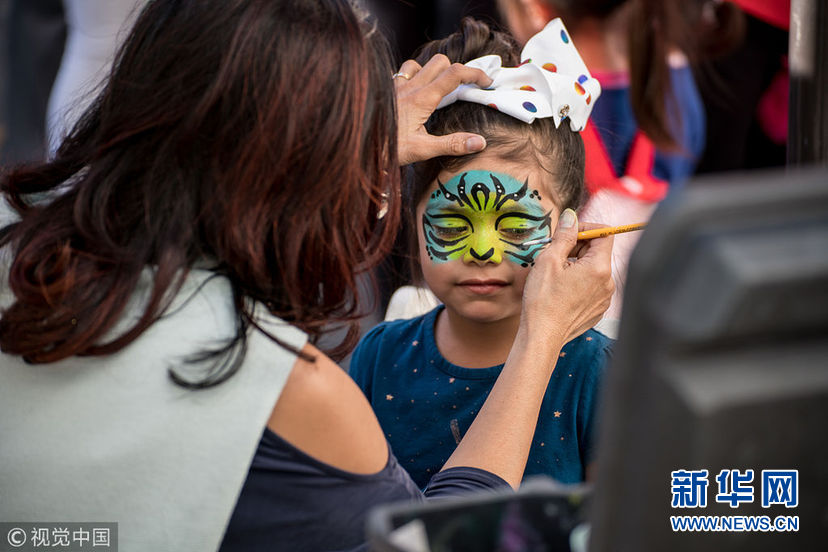 当地时间1月28日,美国洛杉矶,当地Grove商场举行少林武术表演以及其他中国文化类的演出,庆祝传统新年,场外摊位还有传统剪纸,捏面人,糖画,彩绘等项目。图为彩绘。(图片来源:视觉中国)