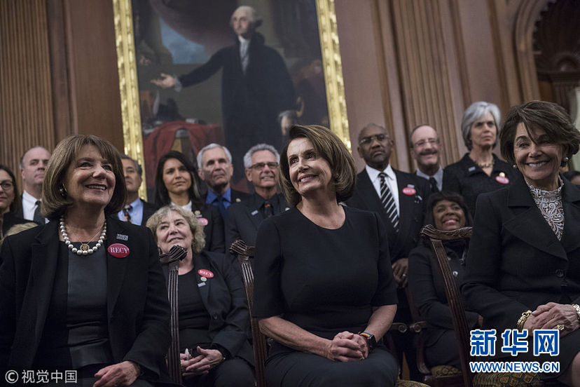 当地时间1月30日,美国华盛顿,民主党国会议员和性侵幸存者一同穿黑衣现身国会大厦,声援勇敢反对性骚扰和歧视的人们。众议院民主党人计划穿黑衣出席特朗普的国情咨文演讲,支持MeToo和TimesUp组织。 (图片来源:视觉中国)