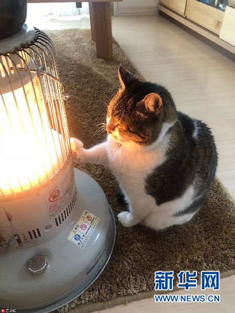 日本“烤火”猫吸粉无数 “守护”暖气寸步不离