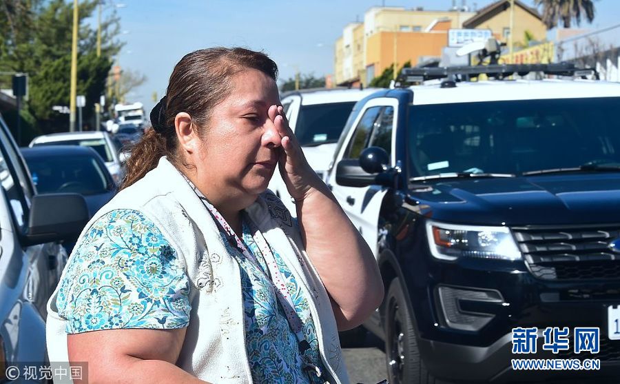 2月1日,美国洛杉矶,洛杉矶萨斯卡斯特罗(Sal Castro)中学发生枪击案,已致2名学生送医,且伤情不明。警方表示,现场情况已经得到控制,开枪的女学生已被羁押。但警方并未透露该学生的年龄和姓名。(图片来源:视觉中国)