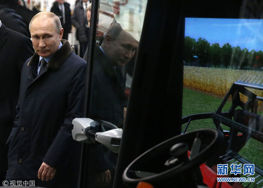 2月1日,俄罗斯顿河畔罗斯托夫,俄罗斯总统普京访问当地拖拉机工厂,试驾拖拉机模拟器。(图片来源:视觉中国)