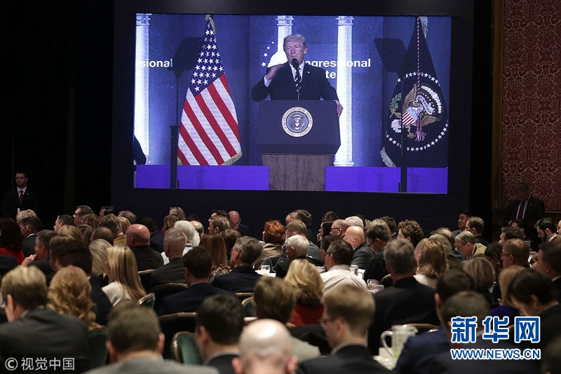当地时间2018年2月1日,美国华盛顿,美国总统特朗普出席参众两院共和党议员大会。(图片来源:视觉中国)
