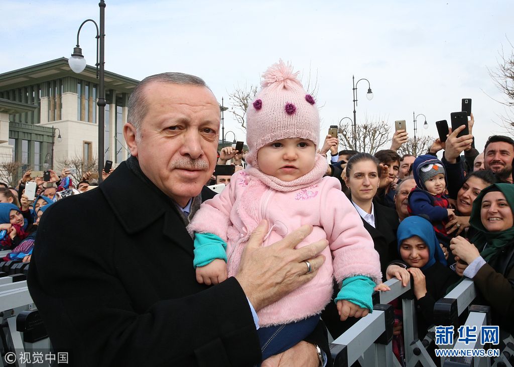当地时间2月2日,土耳其安卡拉,土耳其总统埃尔多安参加周五祈祷后离开清真寺,和一个婴儿合影。 (图片来源:视觉中国)