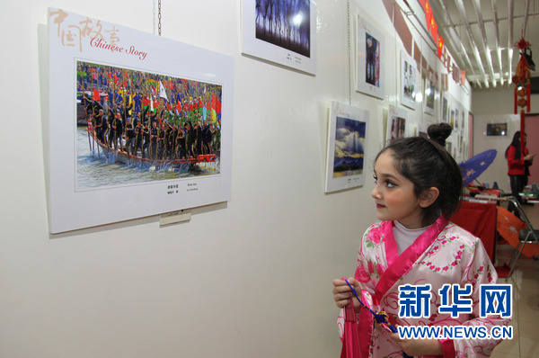 一名学生在欣赏“中国故事”图片展。新华网发(李良勇摄)