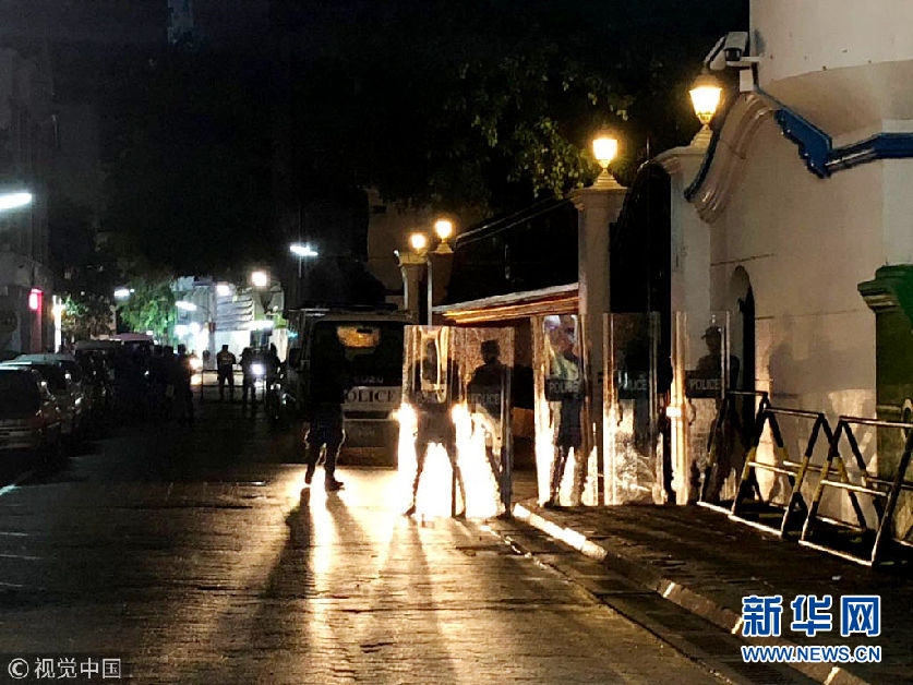 当地时间2月5日,马尔代夫马累,安全部队驻守在最高法院外。马尔代夫法律事务部长沙库尔5日晚通过国家电视台宣布,马尔代夫总统亚明已正式发布命令,从当天开始全国实行为期15天的紧急状态。(图片来源:视觉中国)