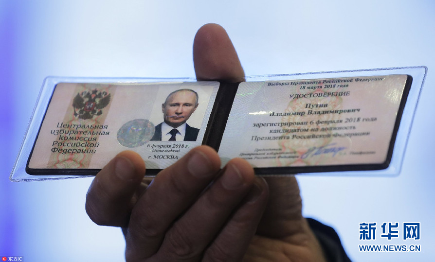 当地时间2018年2月6日,俄罗斯莫斯科,俄罗斯中央选举委员会宣布,他们已经将俄现任总统普京正式登记为俄2018总统大选的候选人。(图片来源:东方IC)