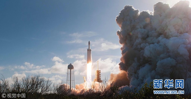 当地时间2018年2月6日,美国佛州卡纳维拉尔角,美国重型运载火箭“猎鹰重型”6日携带一辆特斯拉跑车发射升空。(图片来源:视觉中国)