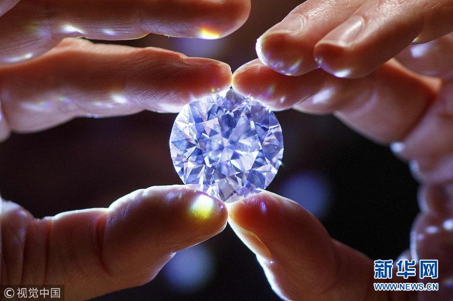 2月8日,英国伦敦,一颗102.34克拉无暇白钻在伦敦苏富比拍卖行展出,预计售价达3370万美元。(图片来源:视觉中国)