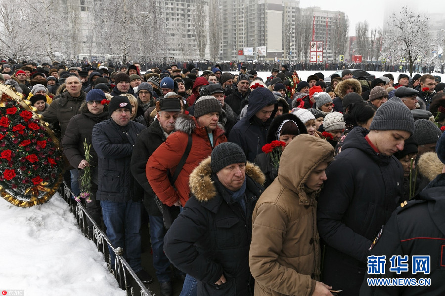 当地时间2018年2月8日,俄罗斯沃罗涅日市,俄罗斯为在叙利亚战死飞行员Roman Filipov举行葬礼。2月3日,俄飞行员Filipov驾驶一架苏-25战机在伊德利卜被叙反政府武装击落,Filipov成功弹射跳伞,但最后在与武装分子战斗中引爆手榴弹牺牲。(图片来源:东方IC)