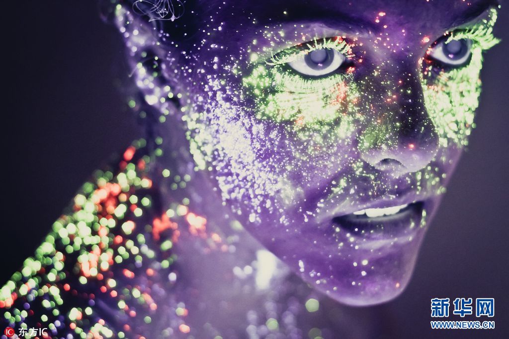 2018年2月9日报道,巴西摄影师Hid Said用荧光颜料涂在模特的面部,再通过光的照射,映出发着霓虹光的人脸肖像,令人震撼。(图片来源:东方IC)