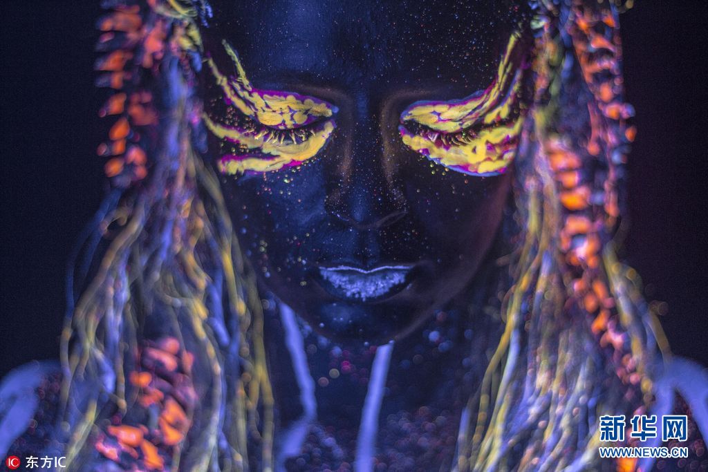 2018年2月9日报道,巴西摄影师Hid Said用荧光颜料涂在模特的面部,再通过光的照射,映出发着霓虹光的人脸肖像,令人震撼。(图片来源:东方IC)