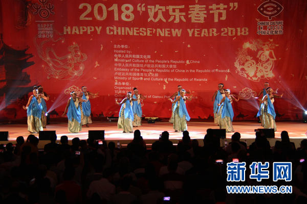 2月9日,卢旺达基加利,卢旺达国家芭蕾舞团在“欢乐春节”演出中表演卢旺达舞蹈。新华网发(吕天然摄)